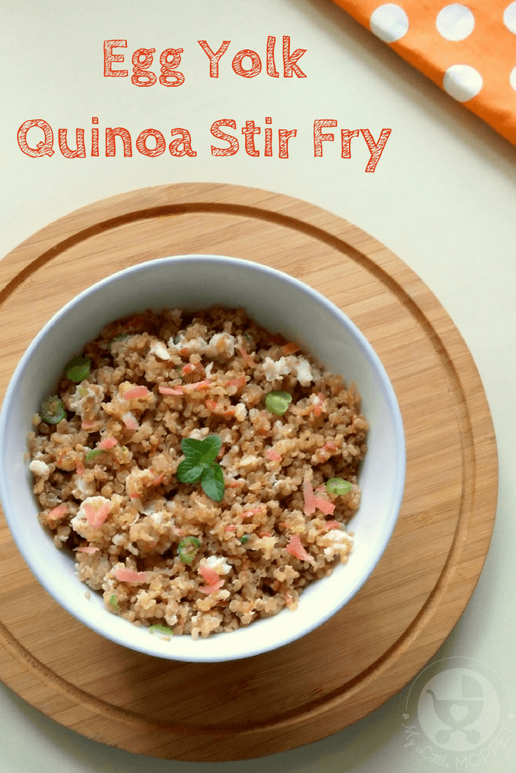Quinoa is one of the healthiest foods around, and most weight watchers make it a part of their diet. But it’s not just the adults who can benefit from it; little babies can too! Quinoa has almost twice as much fiber as most grains, which means a smooth and easy digestion for your little one. It is also extremely rich in protein, which is crucial for proper development of growing babies. Besides these, Quinoa also has good quantities of iron, manganese, magnesium and other essential nutrients – it’s not called a supergrain for nothing! We’ve already featured a Quinoa Apple Porridge for kids, and now your baby can enjoy all these benefits with a yummy egg yolk quinoa stir fry recipe!