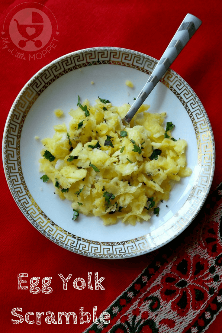 This egg yolk scramble for babies is a recipe that can be whipped up in just five minutes, and it’s filling enough to last a while! The butter makes it hearty enough to be eaten on it’s own but it also works as a great side dish with ghee rice or steamed dosa. This recipe is ideal for babies over 8 months, but please avoid salt till baby turns a year old. If you’re wondering about whether coriander leaves will work with your little one, try a very small quantity at first. Who knows, your baby might just turn out to be a herb-lover!