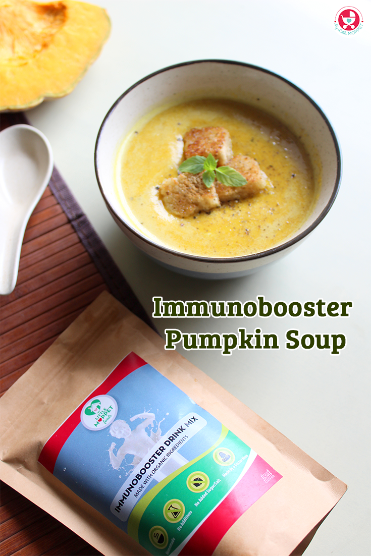 Pumpkins are incredibly nutritious, filled with nutrients like vitamins A, B6, and C, magnesium, iron, and potassium. These help to boost your immune system, improve your mood and are even known to reduce cancer risk. The special part of today’s unique immunity boosting pumpkin soup is that it’s made even better with a spoon of the Immunobooster drink mix, which contains oats, broken wheat, almonds, flax seeds, pumpkin seeds, sunflower and sesame seeds. This handy powder easily blends with any hot or cold drink and can be added to smoothies, shakes, soups, parathas and more. Try it out with our pumpkin soup recipe and see the difference!