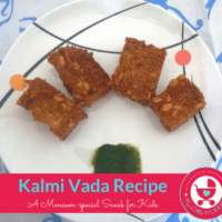 Come monsoons, and every part of India brings out their monsoon-special snacks, most of them being some relation of the pakora! Today’s recipe is a popular vada recipe from the western part of India – Kalmi Vada- a quick and tasty recipe. Even though this is a fried snack, it’s got significant protein power – great for growing kids!