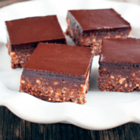 Summer’s here and for most of us, slogging in the kitchen is NOT our idea of summer fun! If you’d love to spend as little time as possible with the stove and oven, I have good news for you! Here is a no-bake dessert recipe that requires no baking and very little heat otherwise – Peanut Butter Chocolate Squares.