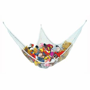 Although it’s not closed storage, soft toys resting on a hammock lend a very cute and colorful look to the child’s room. Check out more information about this hammock.